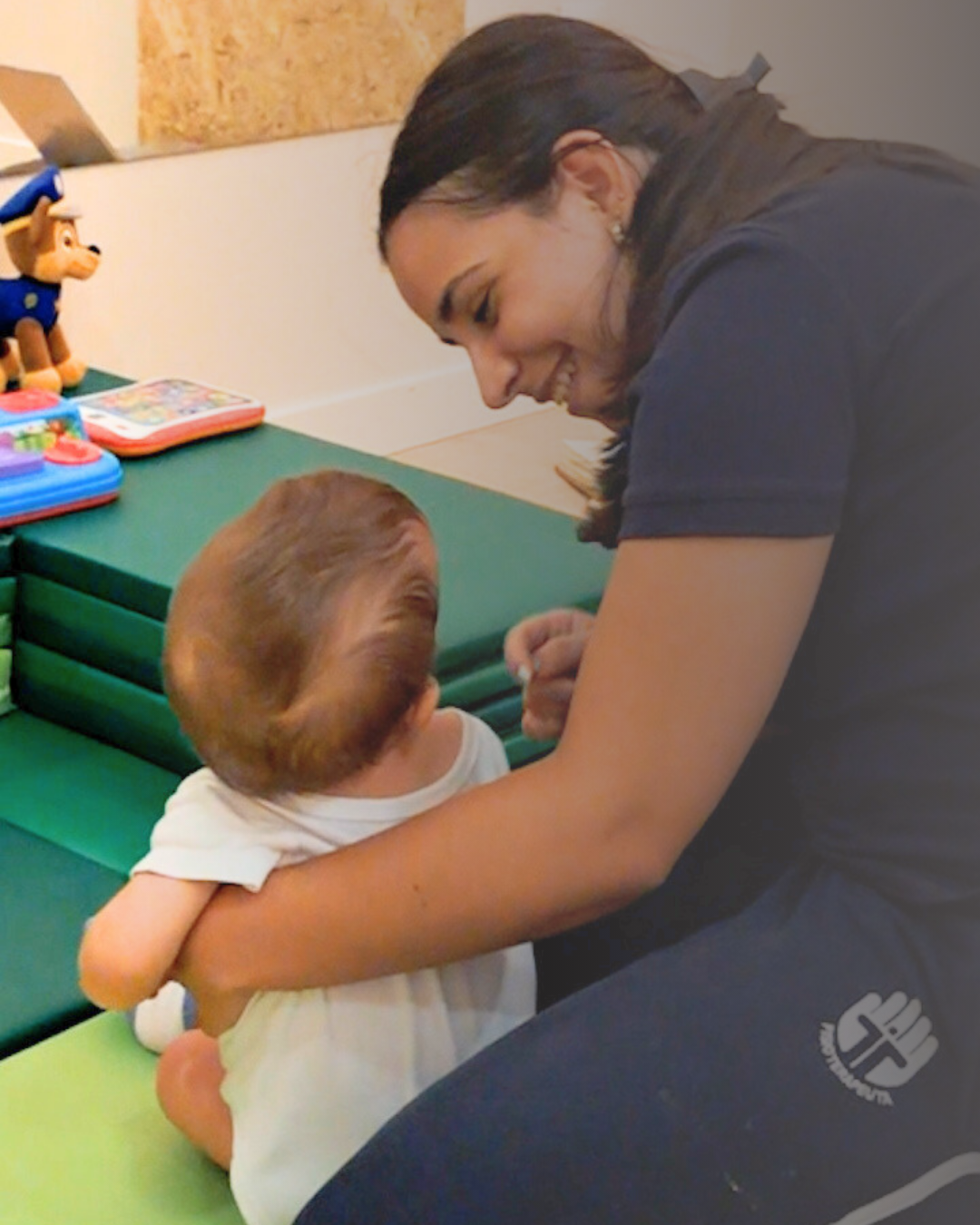 Uma sessão de avaliação clínica de fisioterapia respiratória, realizada por profissionais especializados, com foco na respiração da criança ou bebé.